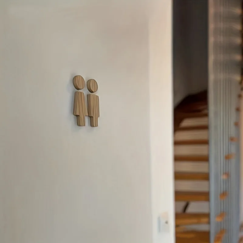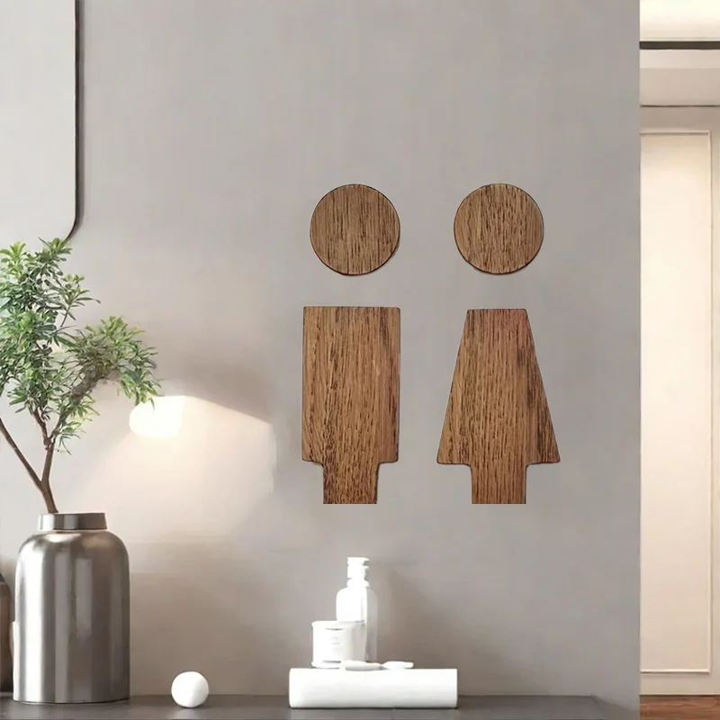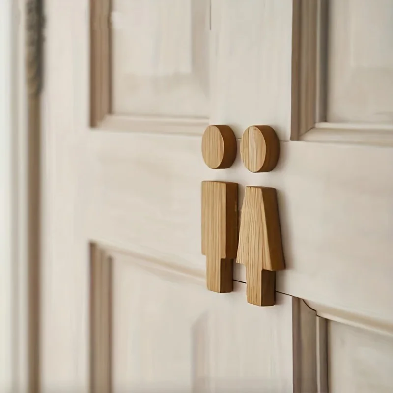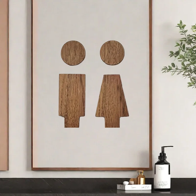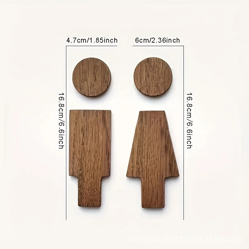 1pc Self-adhesive Solid Wood Men's &women's Toilet Sign